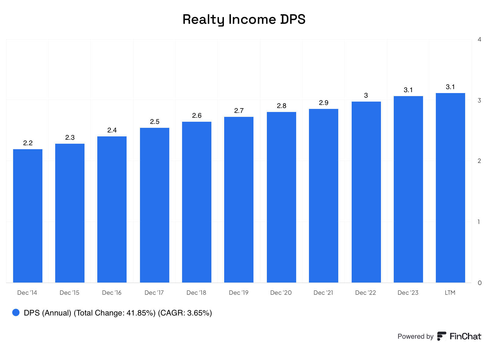 Realty Income is a real estate company that buys properties and rents them to big, stable companies, like grocery stores and pharmacies.