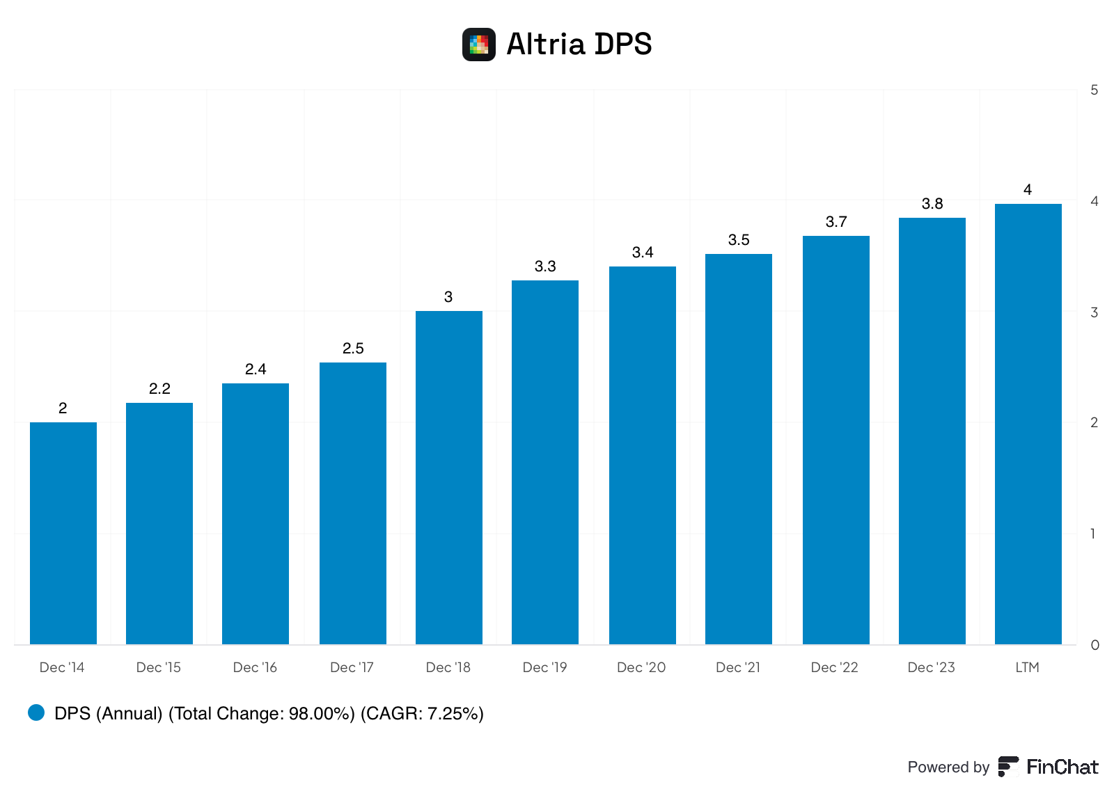 Altria offers a high dividend yield, stable revenues, and consistent dividend growth.