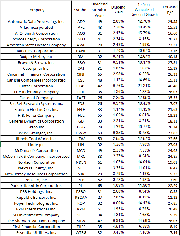 Theyâve raised their dividends for at least 10 straight years.