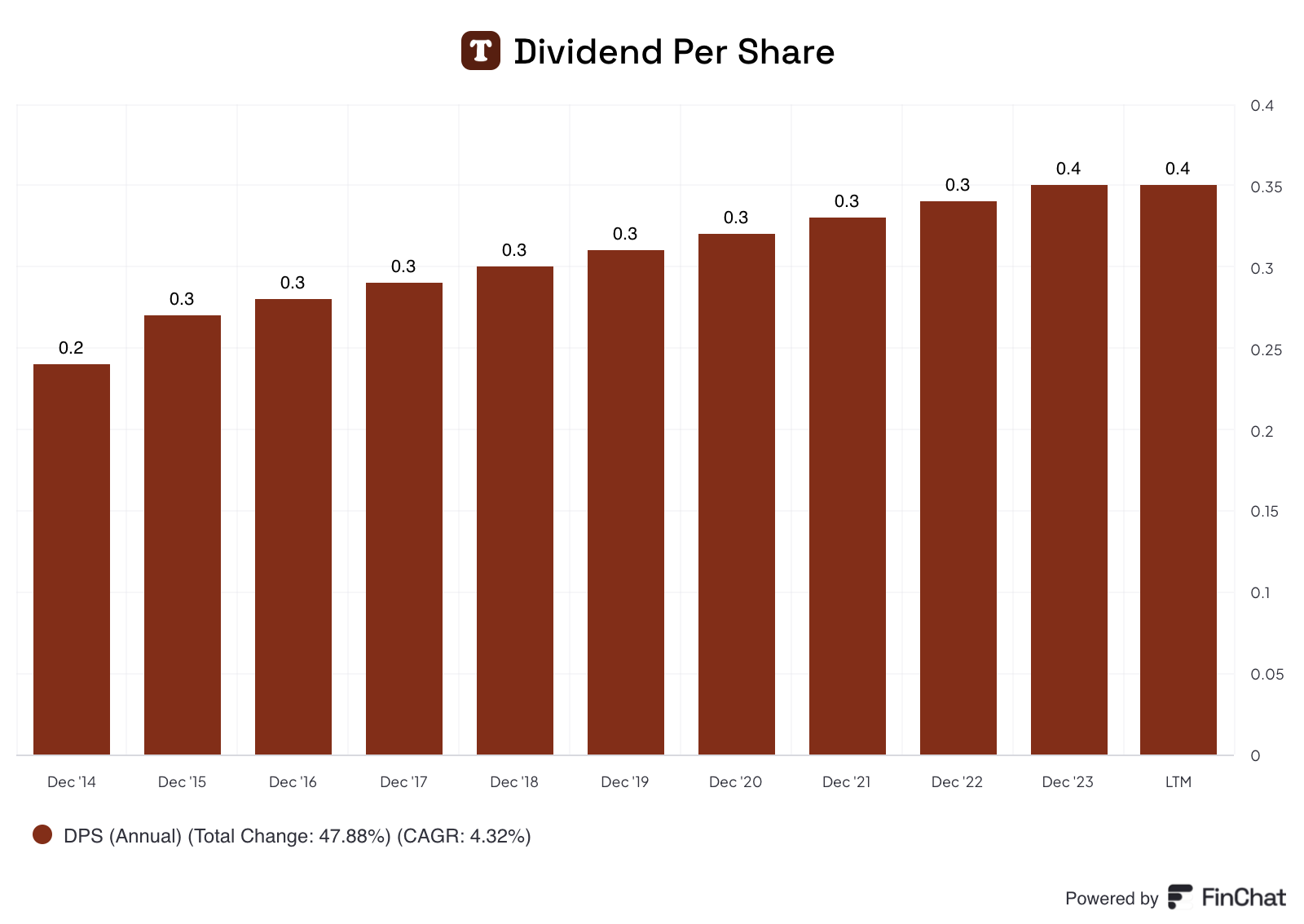 TR shares trade for a 2024 P/E of 22, below our fair value estimate of 30. Shares also have a 1.2% dividend yield. Total returns are estimated at 10.7% per year over the next five years.