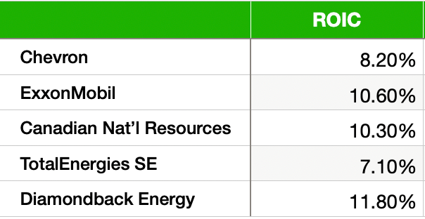 Using the average ROIC for the past 5 years, we’ll give one point to any company with an ROIC > 8% (the average return of the stock market).