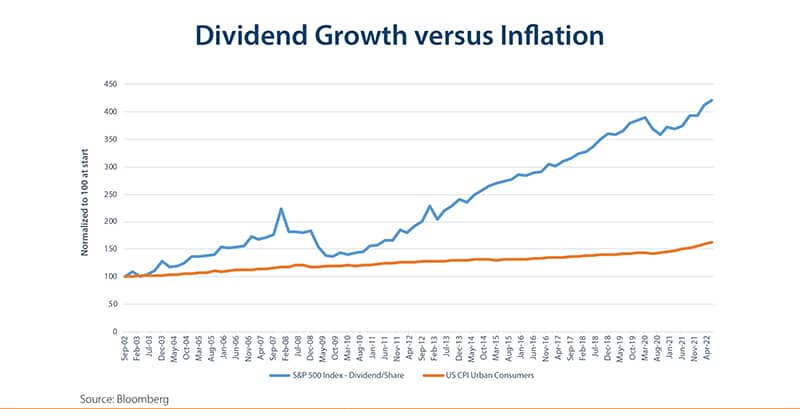 The image shows how dividends from the S&P 500 grow compared to the CPI, which measures inflation.