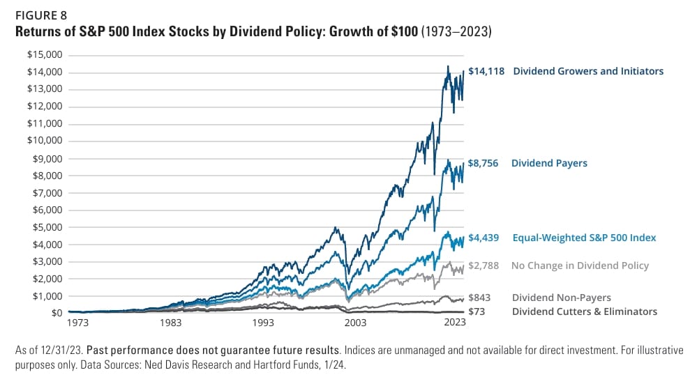 Dividend growers usually drop less during market declines. This helps dividend investors stay calm and avoid panic selling during market dips.