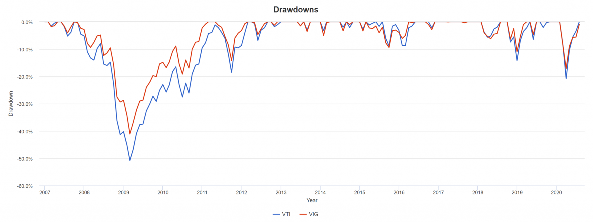 From January 2008 to the market bottom in 2009, the S&P 500 dropped by over 50%.