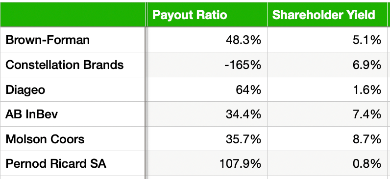 The worst? Pernod Richard SA with a payout ratio over 100% and a very low shareholder yield.
