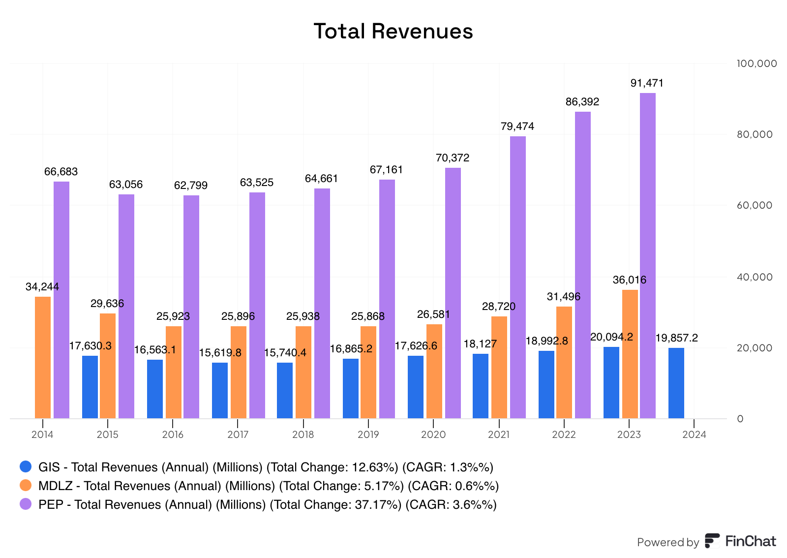 - Diverse revenue streams lead to more stable income compared to PepsiCo and Mondelez