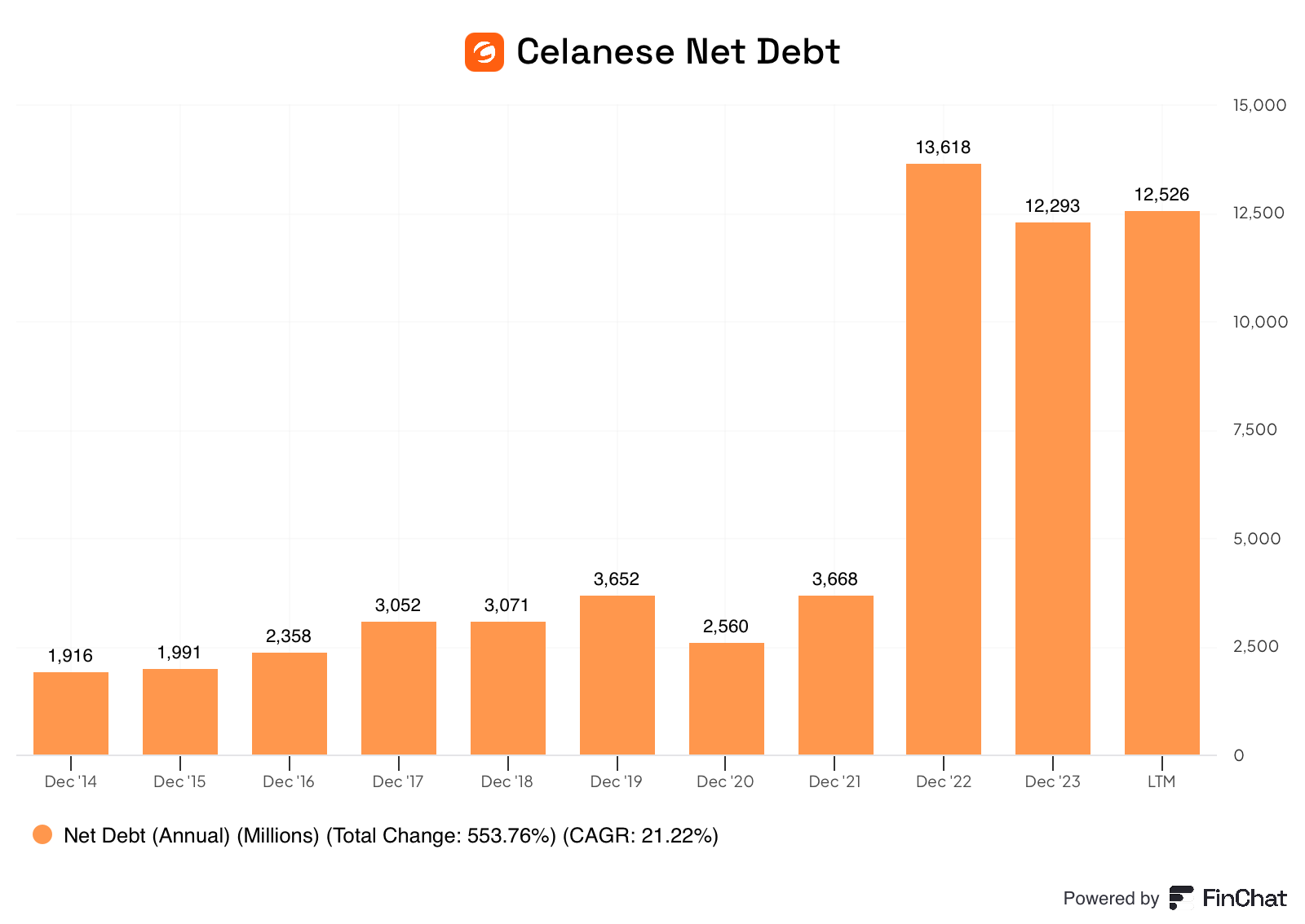 Celanese increased its debt by 4x in 2022.
