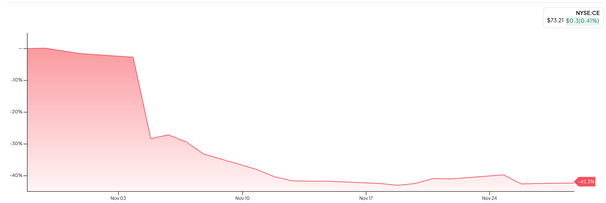 The biggest decliner this month? Celanese