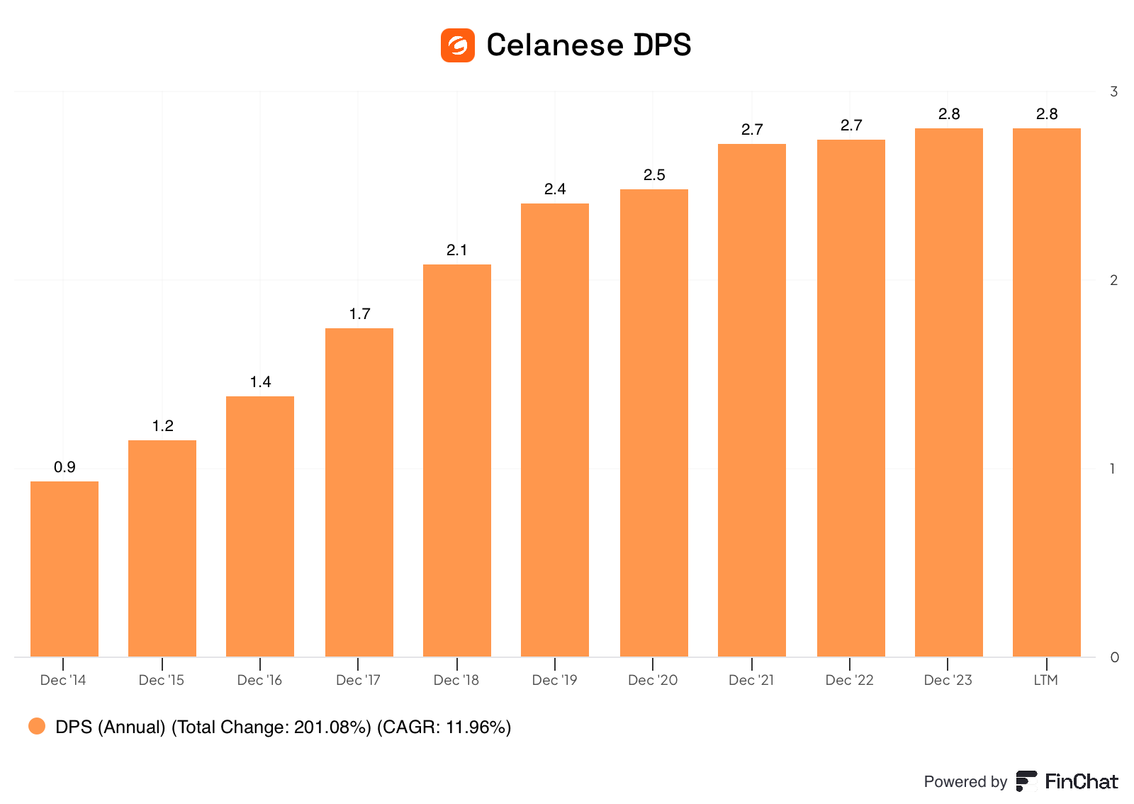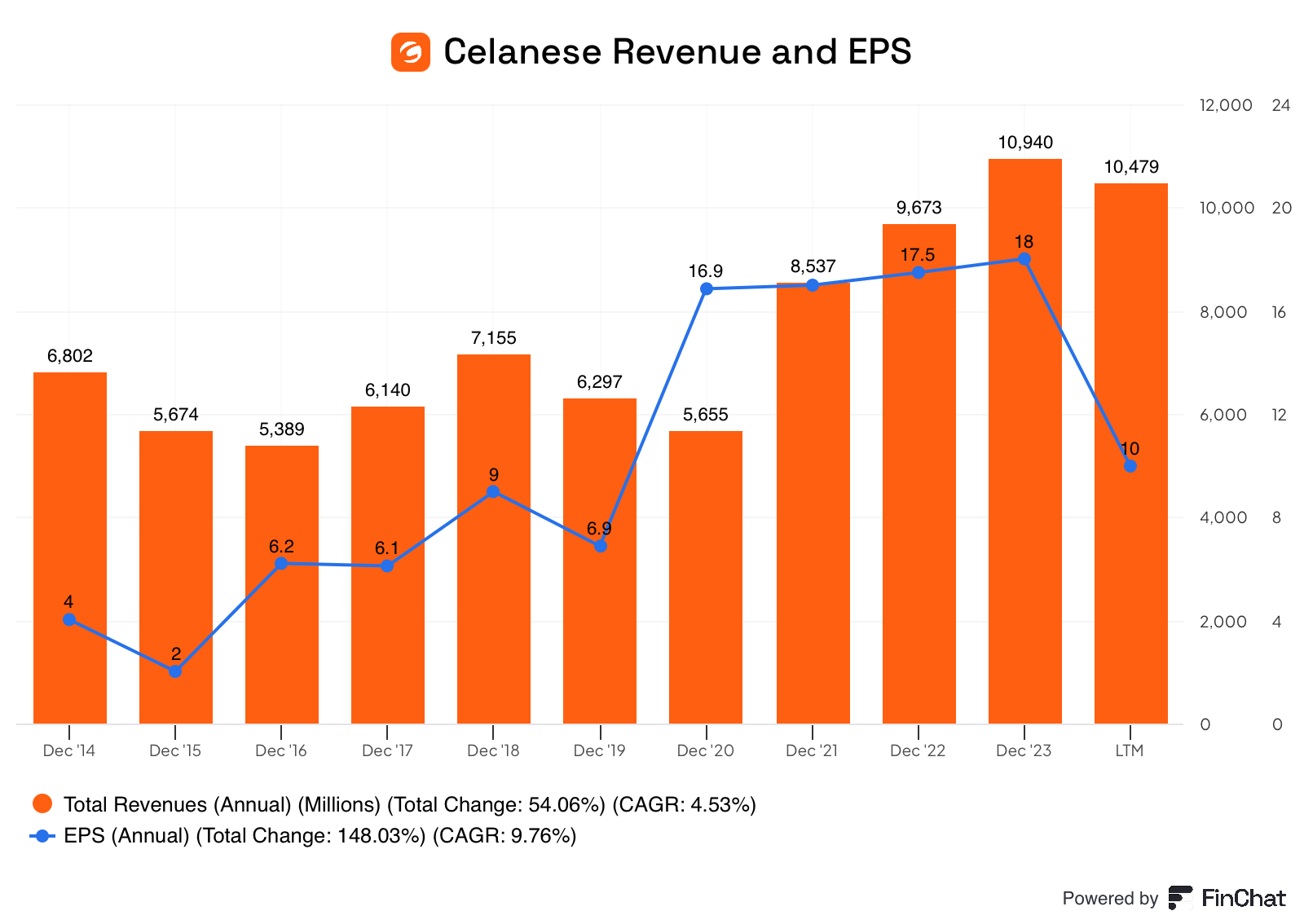 The revenue and EPS are lumpy, but as a chemical maker, Celanese has some cyclicality.