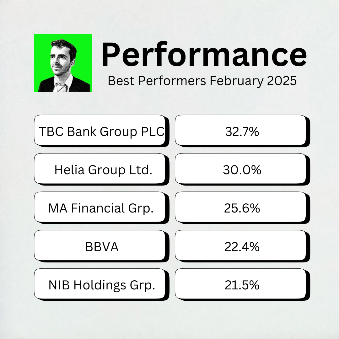 TBC Bank Group PLC was this month’s best performer, rising over 32%.