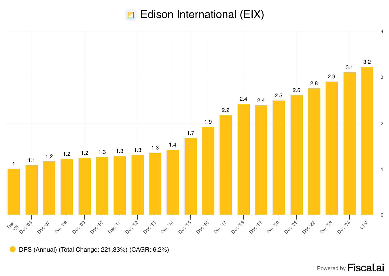 Edison has raised its dividend for 21 years in a row with an attractive 10-year DPS CAGR of 7.3%.