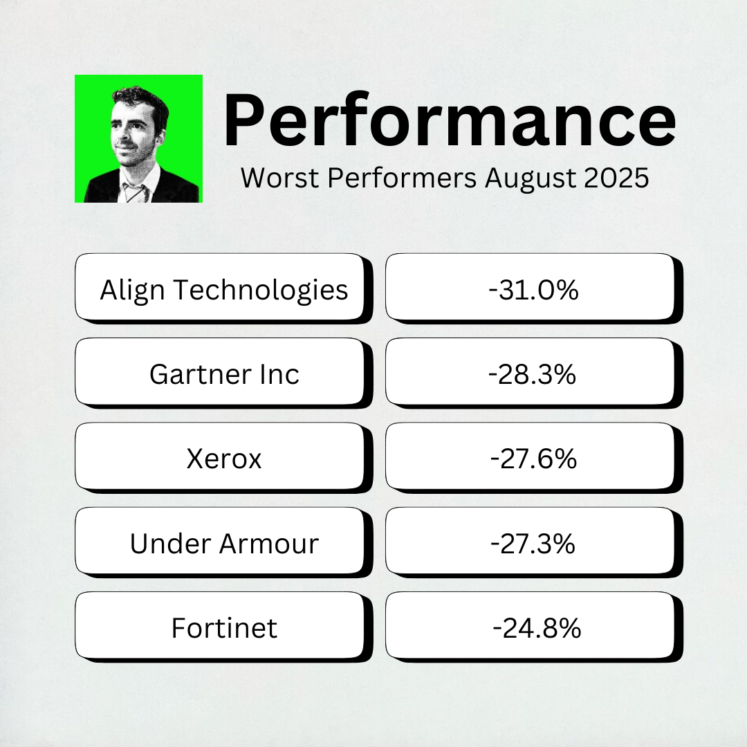 Hanesbrands Inc. was this month’s best performer, rising over 42%.