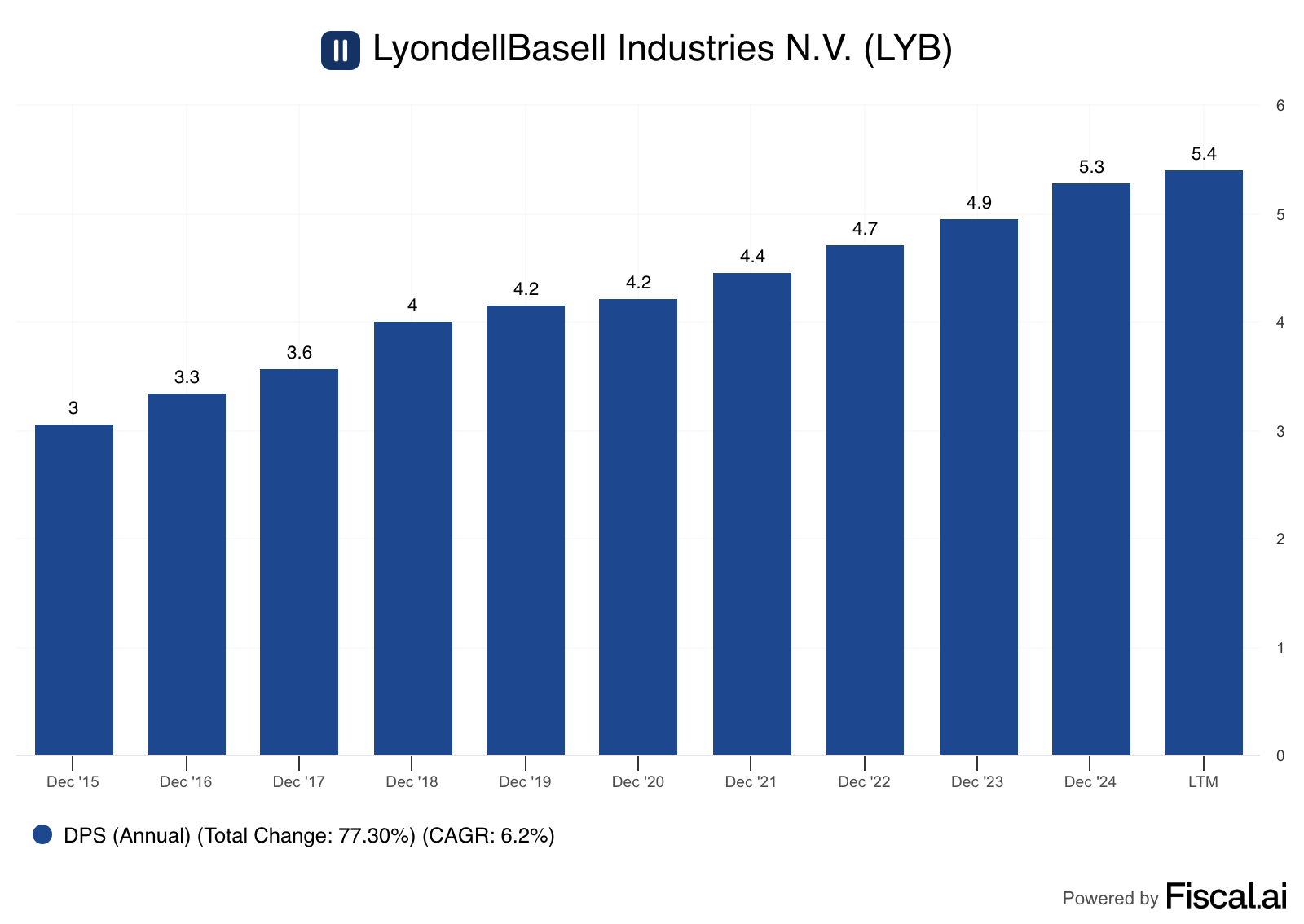 On the other hand, if chemical margins stay depressed or deteriorate further, LyondellBasell could struggle to support the dividend without raising debt.