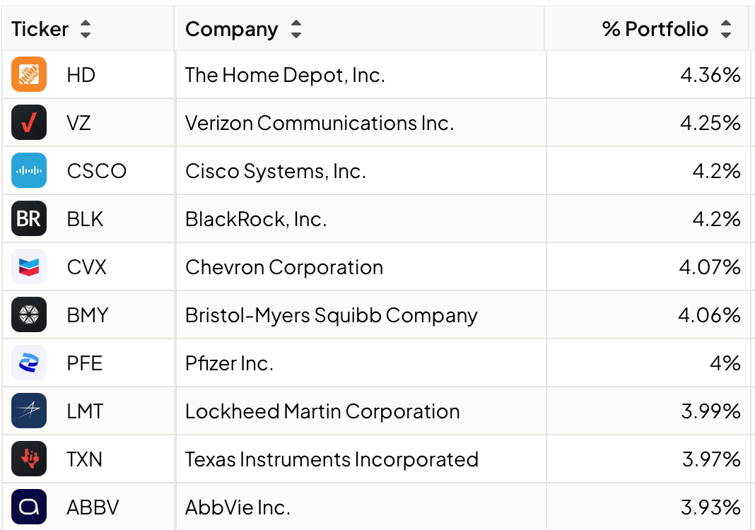 Here are the top 10 positions of SCHD: