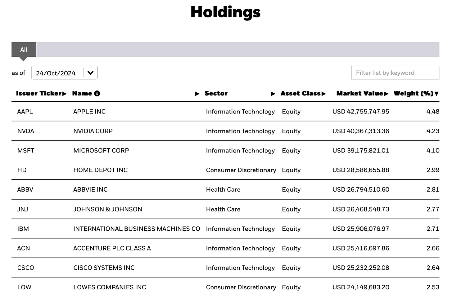 Here are the top 10 holdings: