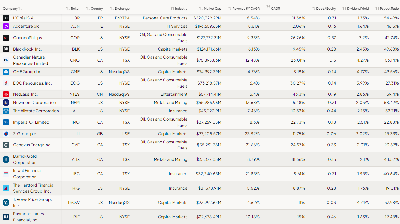 - Dividend yield > 1.5% (equal to the current yield of the S&P 500)