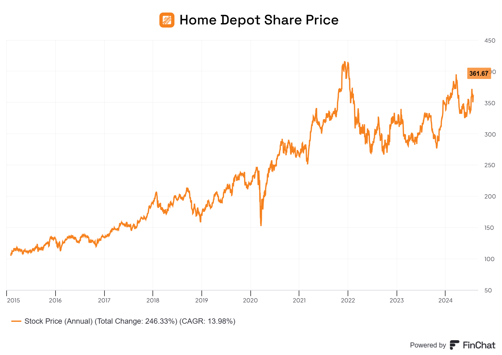 Wouldn’t you have loved to have bought Home Depot for $100 in 2015 and still own it today at $361?