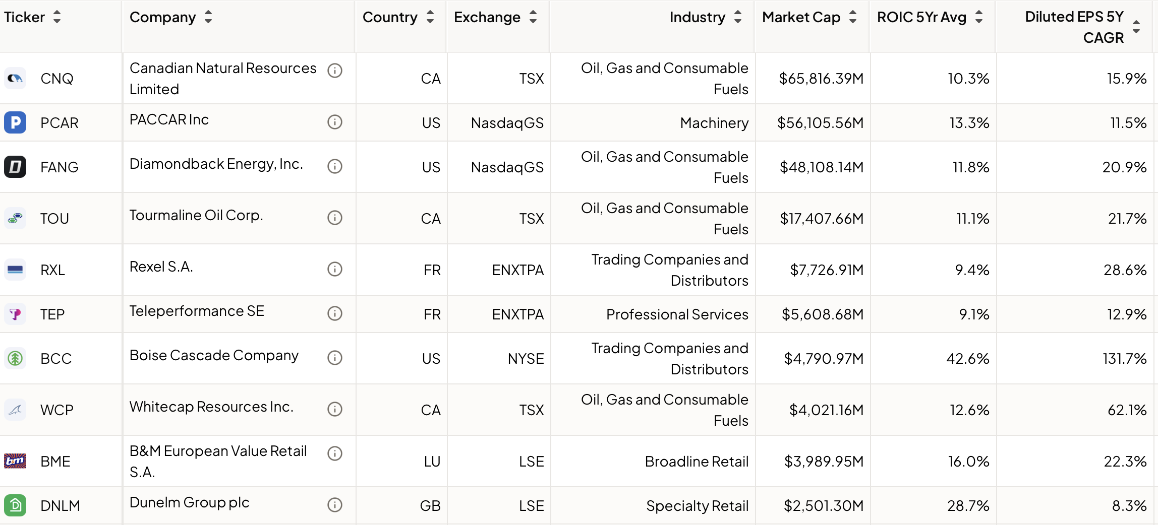 - Narrow things down even further, to select companies with lower Payout Ratios, and good capital allocation metrics