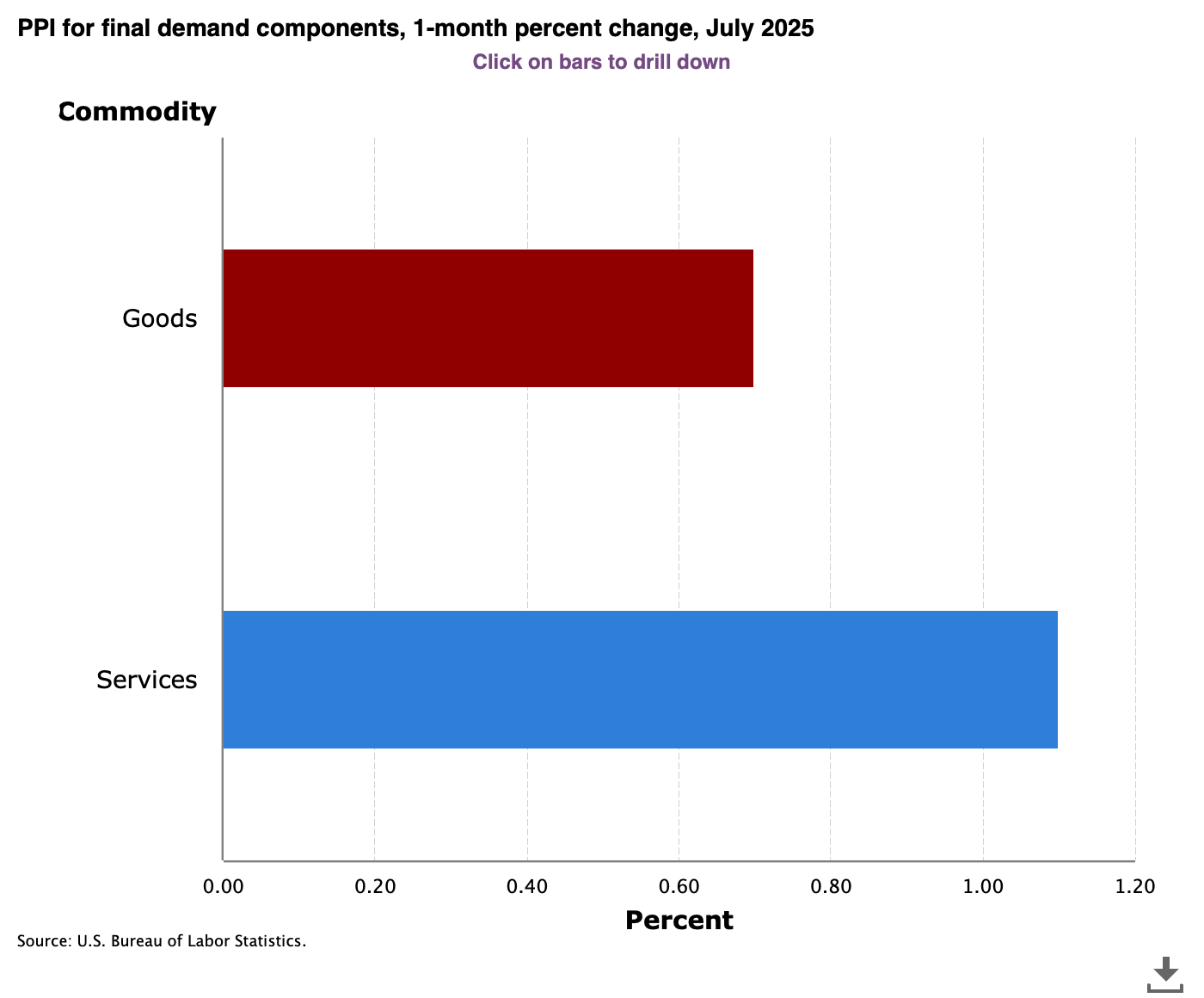 - From July 2024 to July 2025, PPI rose 3.3% (vs. 2.5% expected).