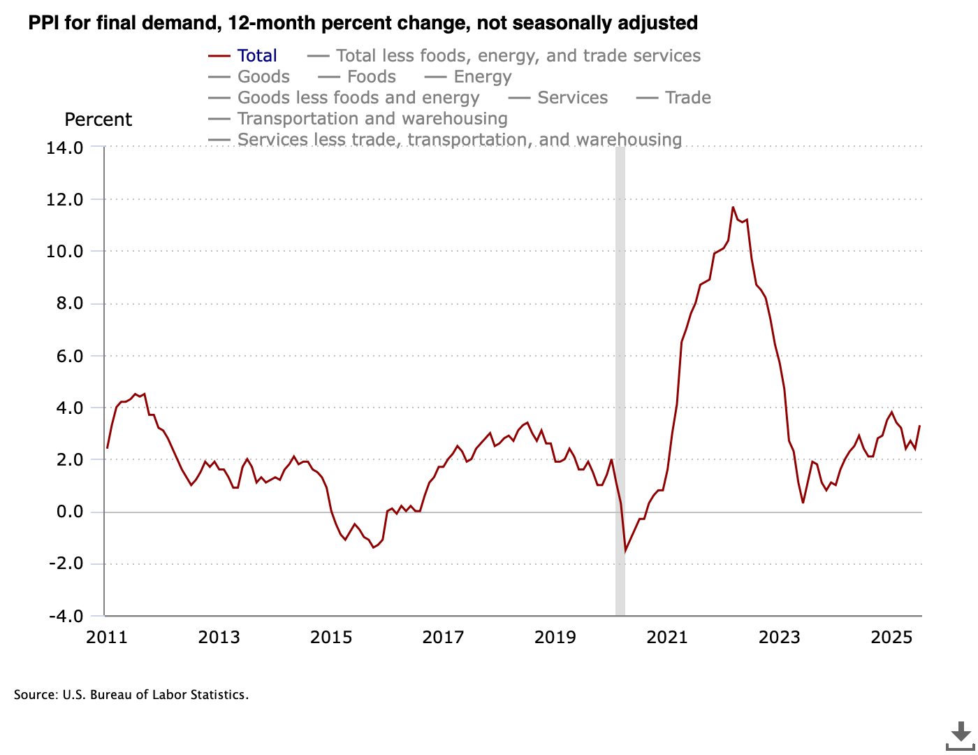 - From June 2025 to July 2025 alone, PPI rose 0.9%.