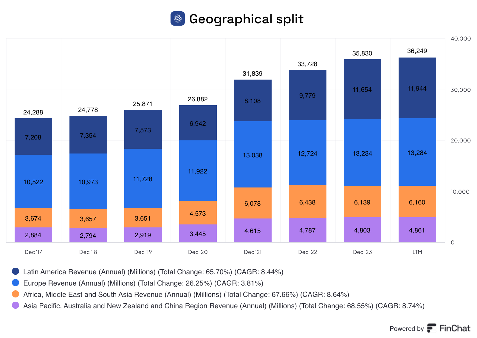 - Other Products (around 5% of total revenue): Think about water brands (Aquafina), and newer health-conscious products.