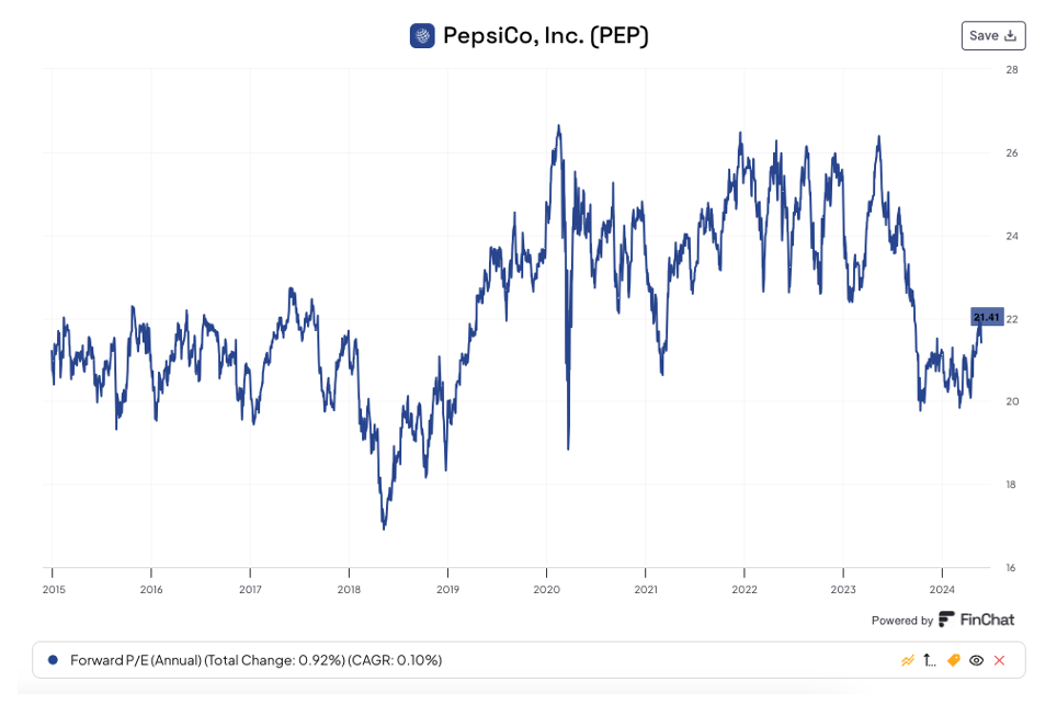 Over the past 5 years, PepsiCo’s forward PE averaged 23.5x.