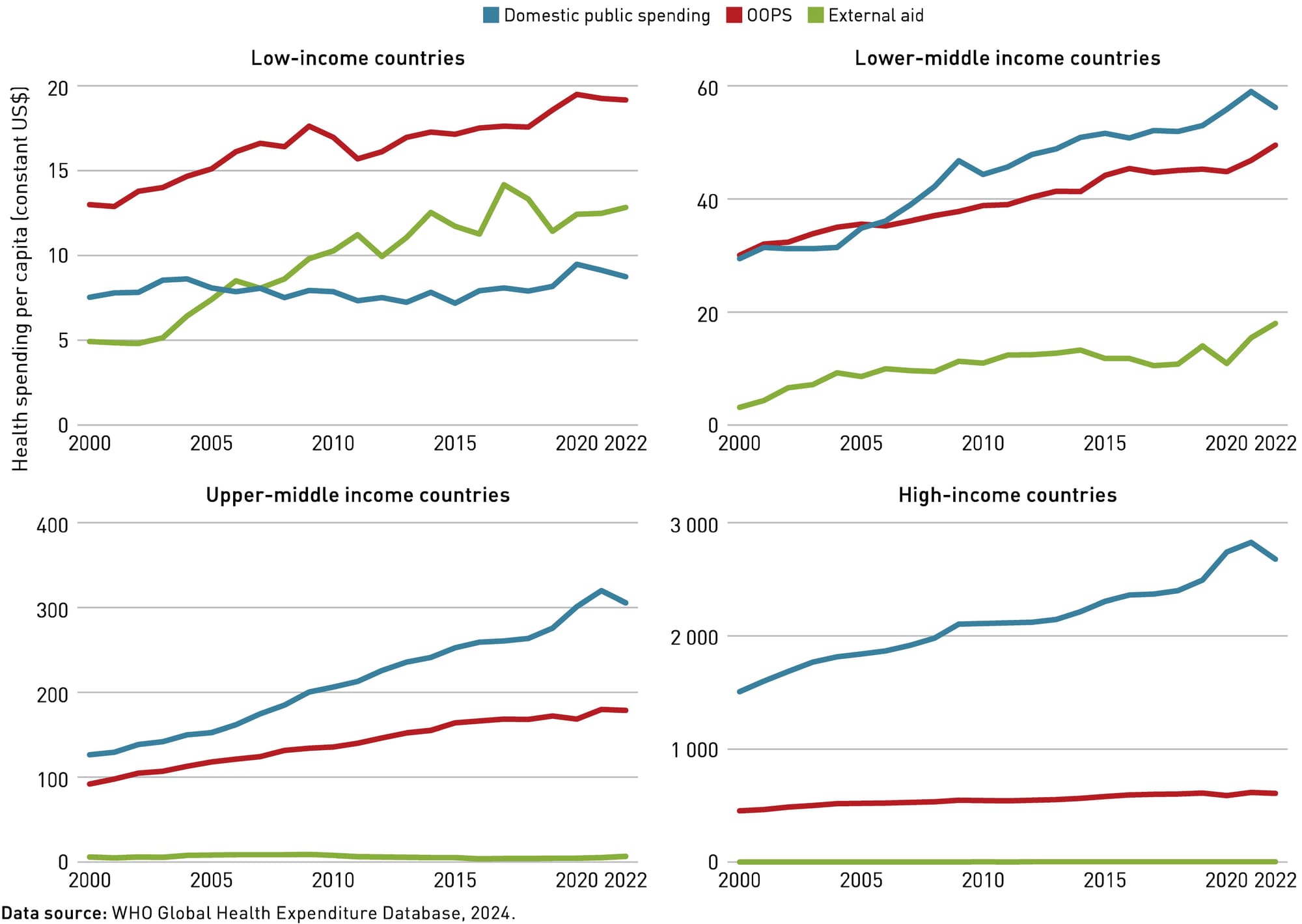 The trend in healthcare spending is up, regardless of the income level of the country.