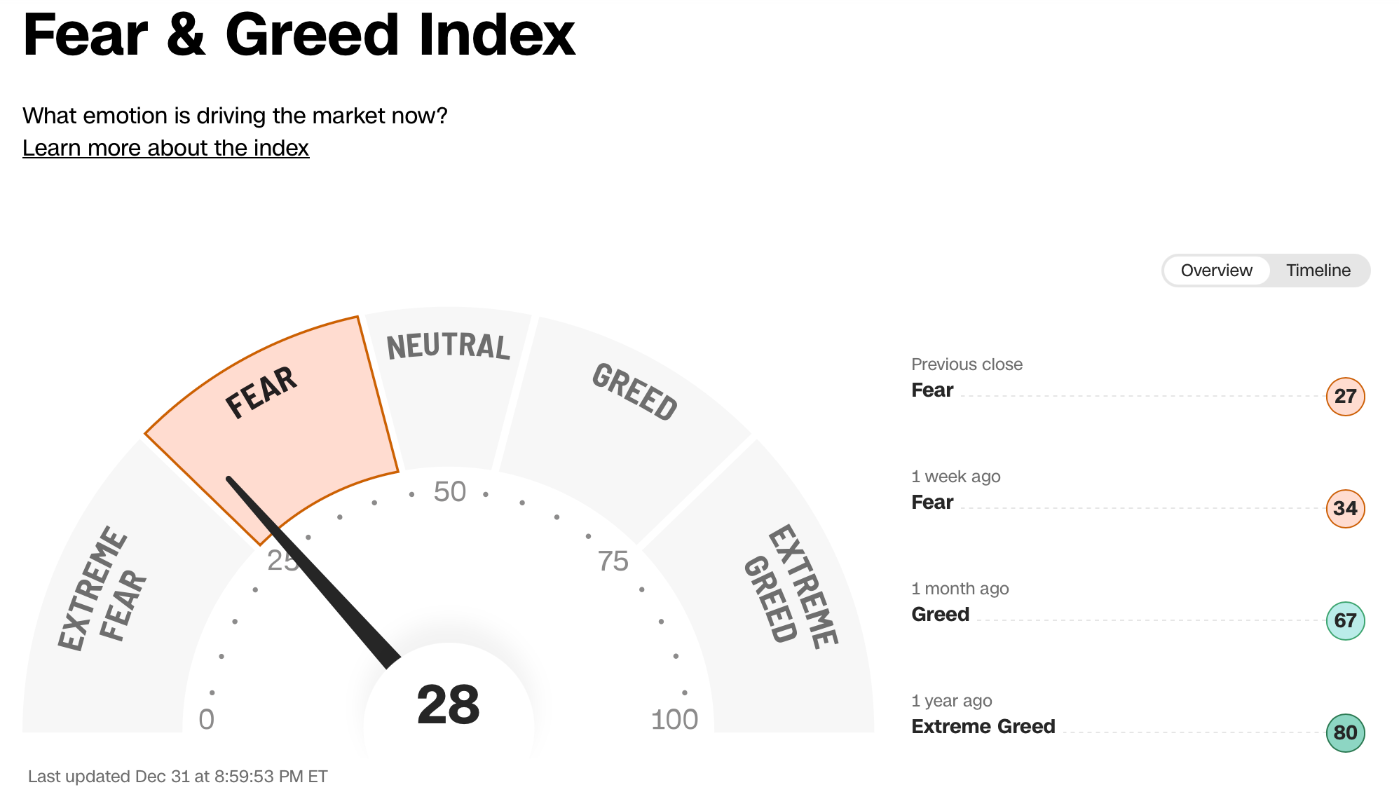 The Fear & Greed Index indicates that we ended December in ‘Fear’ Mode.