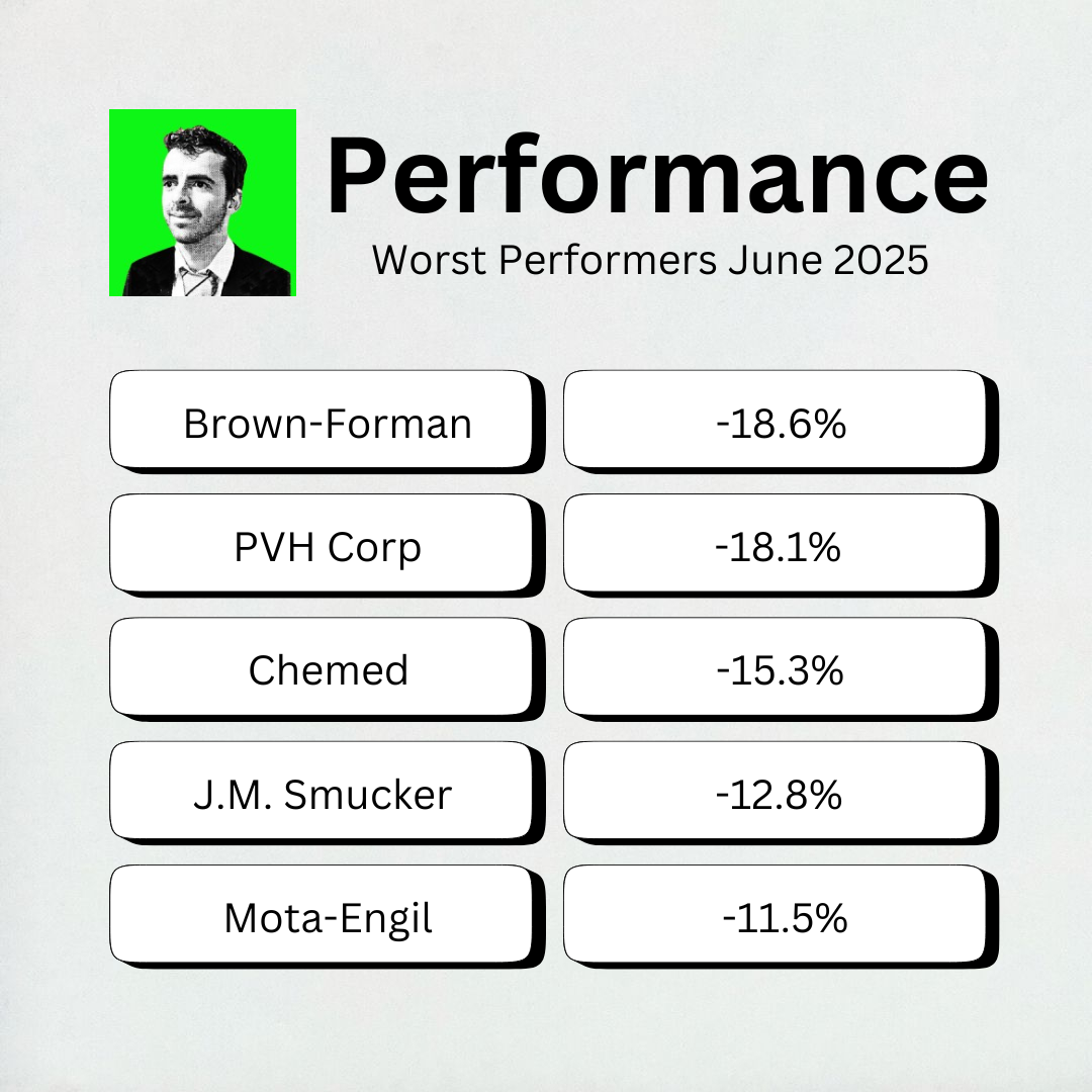 The biggest decliner this month? Brown-Forman.