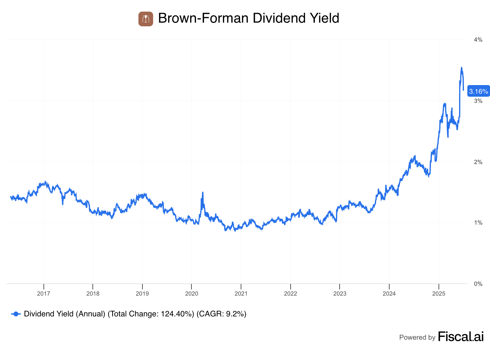Brown-Forman is currently trading at a much higher starting yield than we’ve seen in over a decade.