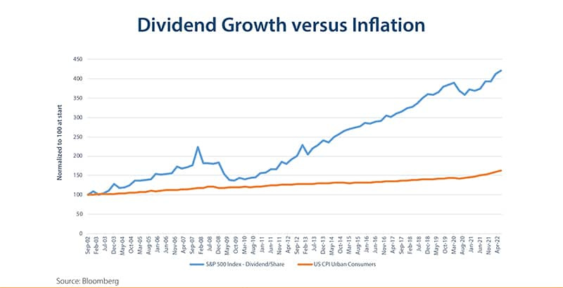 The image shows how dividends from the S&P 500 grow compared to the CPI, which measures inflation.