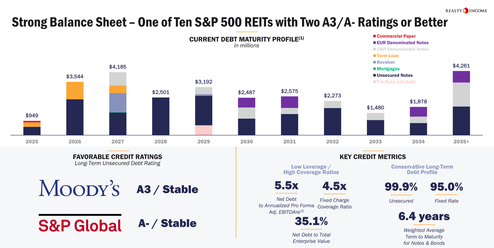 - Interest Rate Sensitivity: As a REIT, Realty Income depends heavily on debt markets. Rising interest rates increase borrowing costs and make its dividend less attractive compared to bonds.
