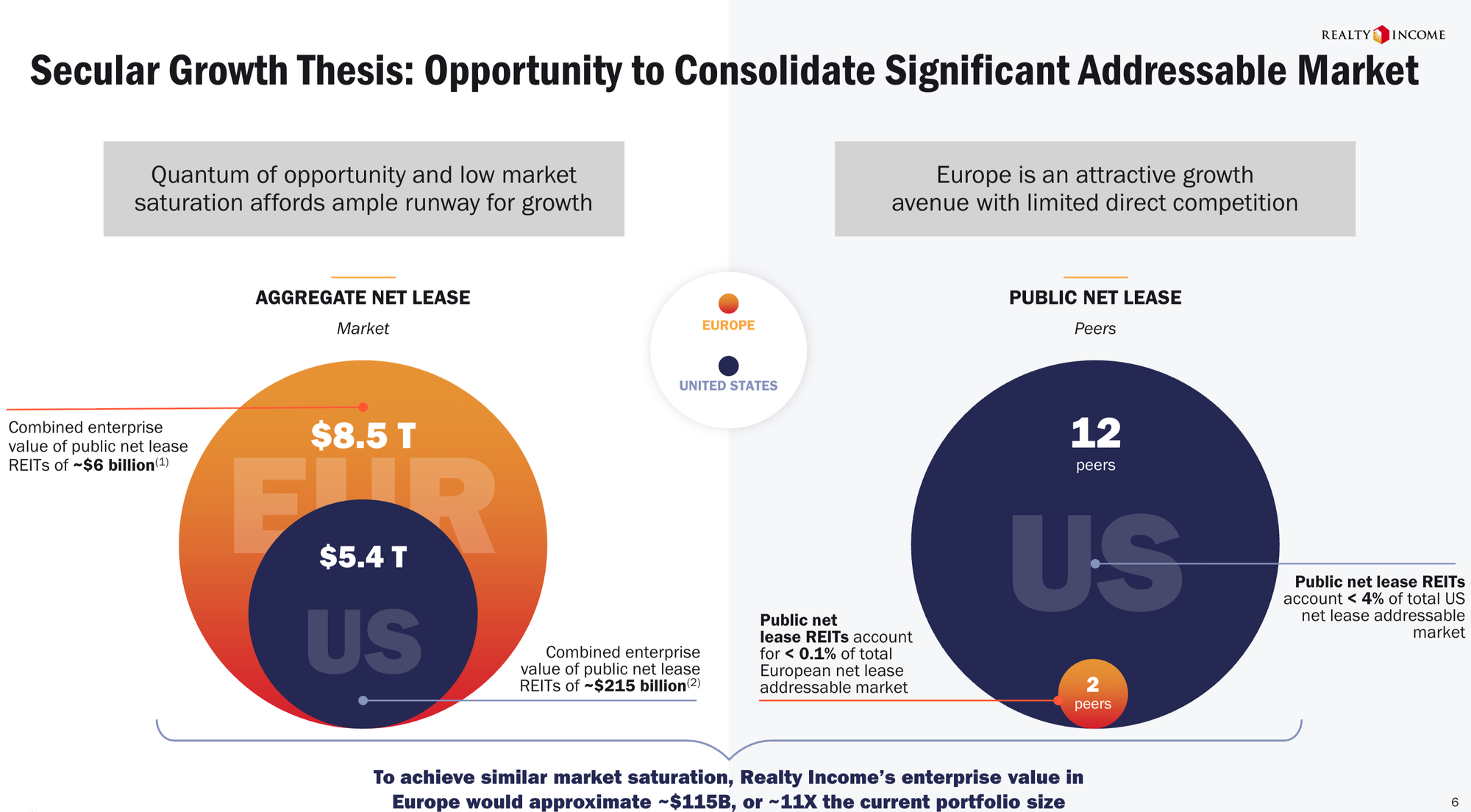But now, Realty Income is looking at expanding heavily in Europe. The opportunity set is larger there, and there is less competition: