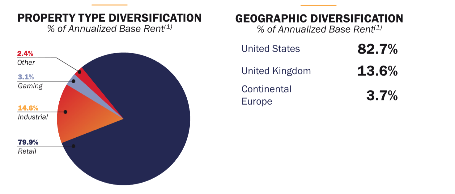They own more than 15,000 properties across the U.S. and Europe, leased to over 1,300 tenants in 85+ industries.