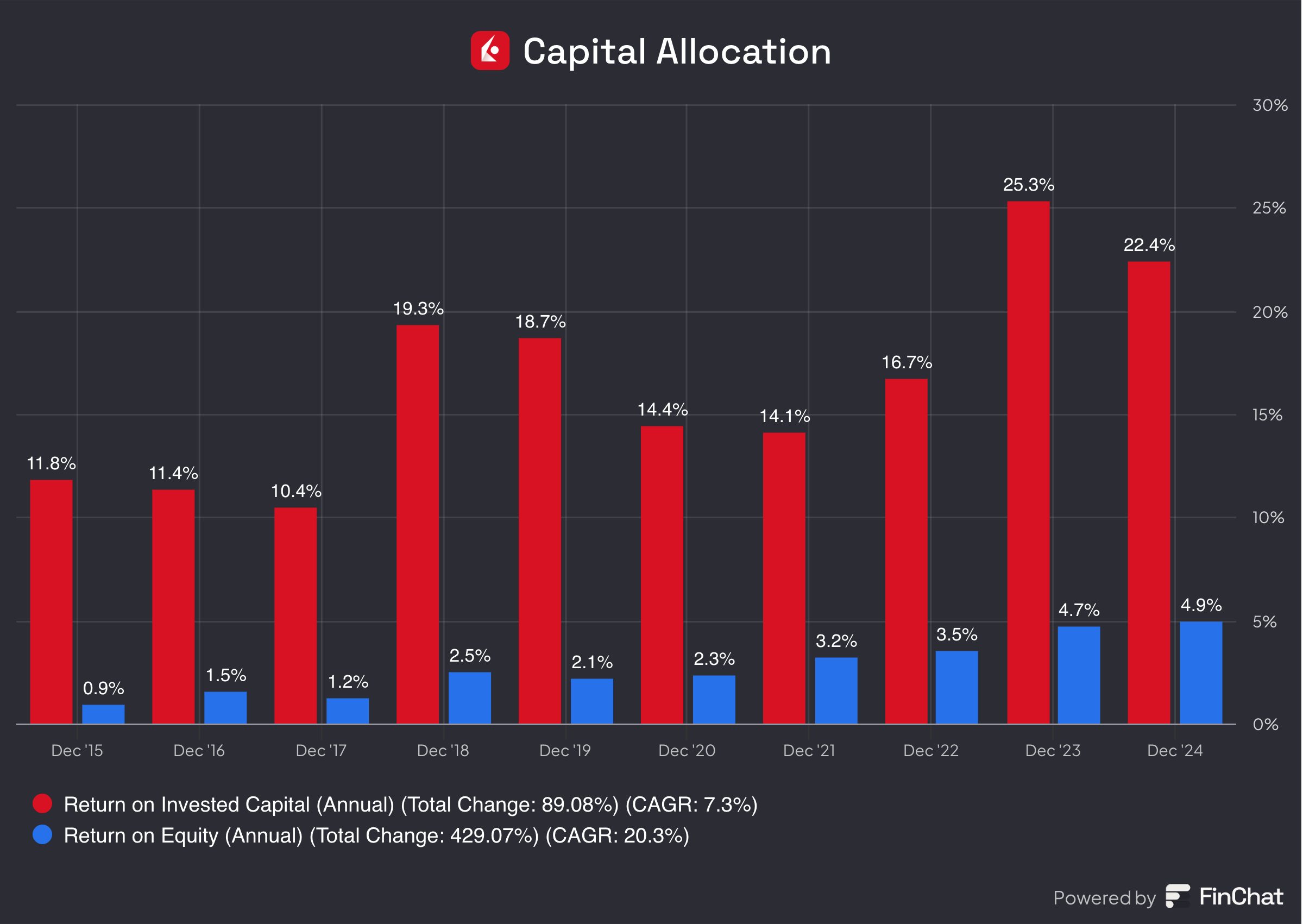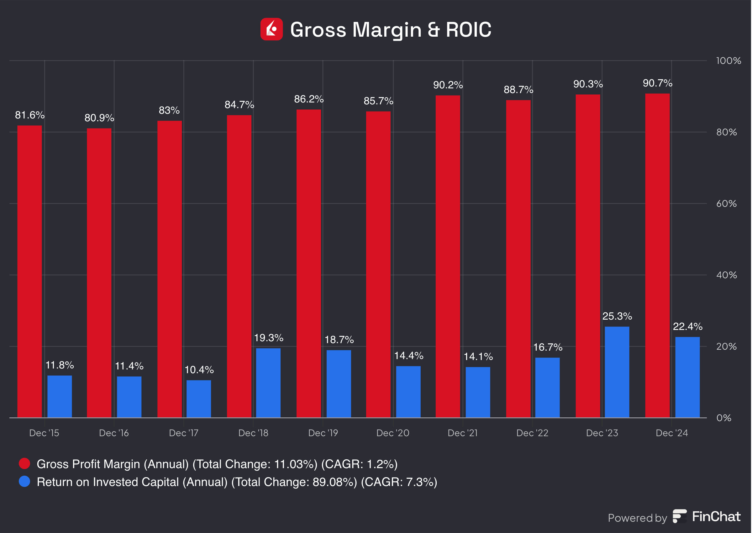 - ROIC: 22.4% (ROIC > 15%? ✅)