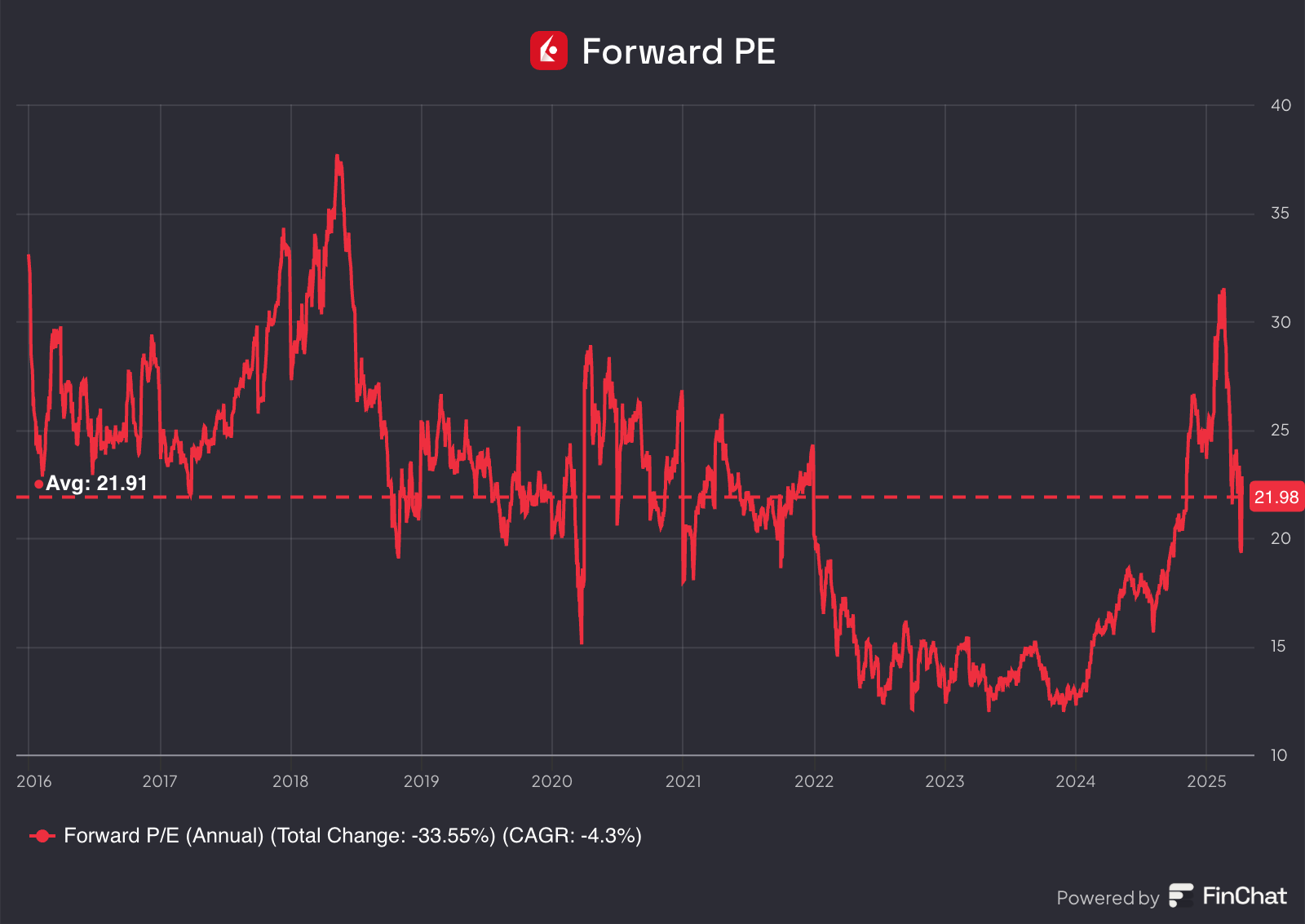- Forward PE: 22.0x (lower than its 5-year average? < 22.0x? 🤷♀️)