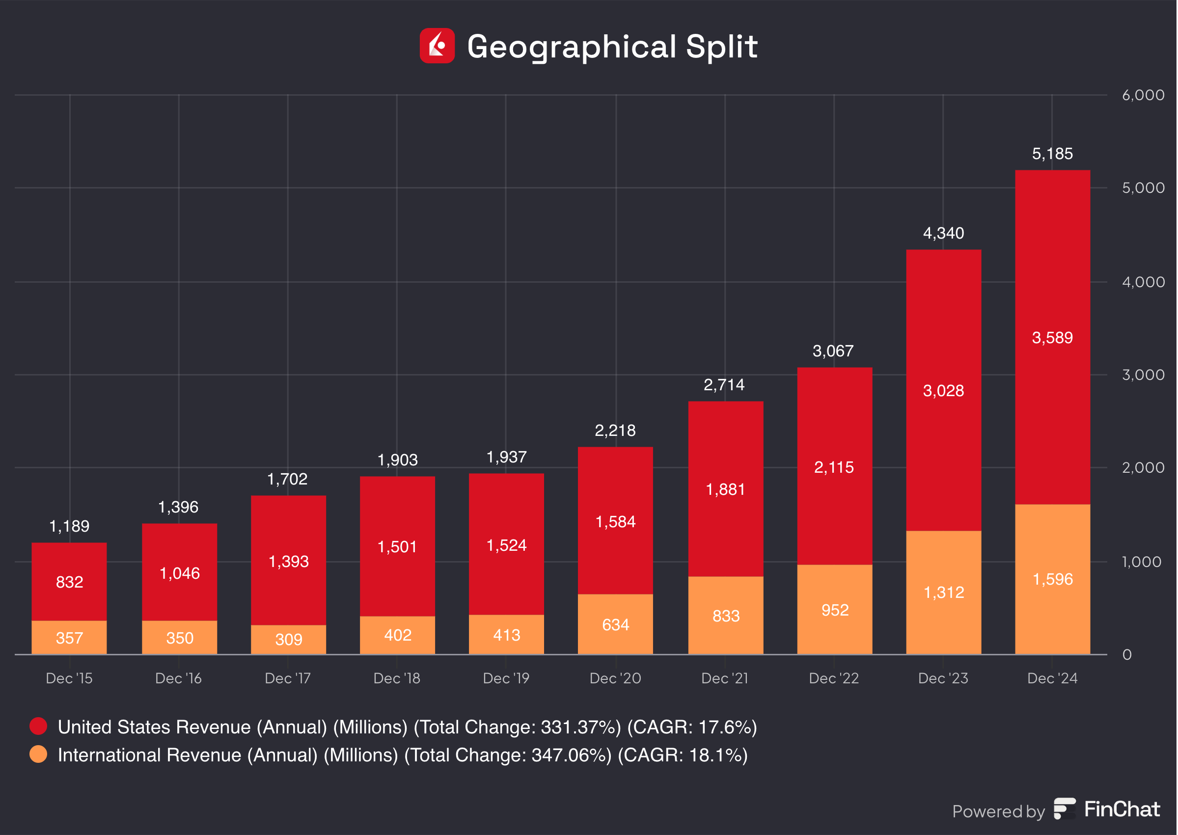 The company is active in almost 200 countries, but most of its revenue (69%) is generated in the US.