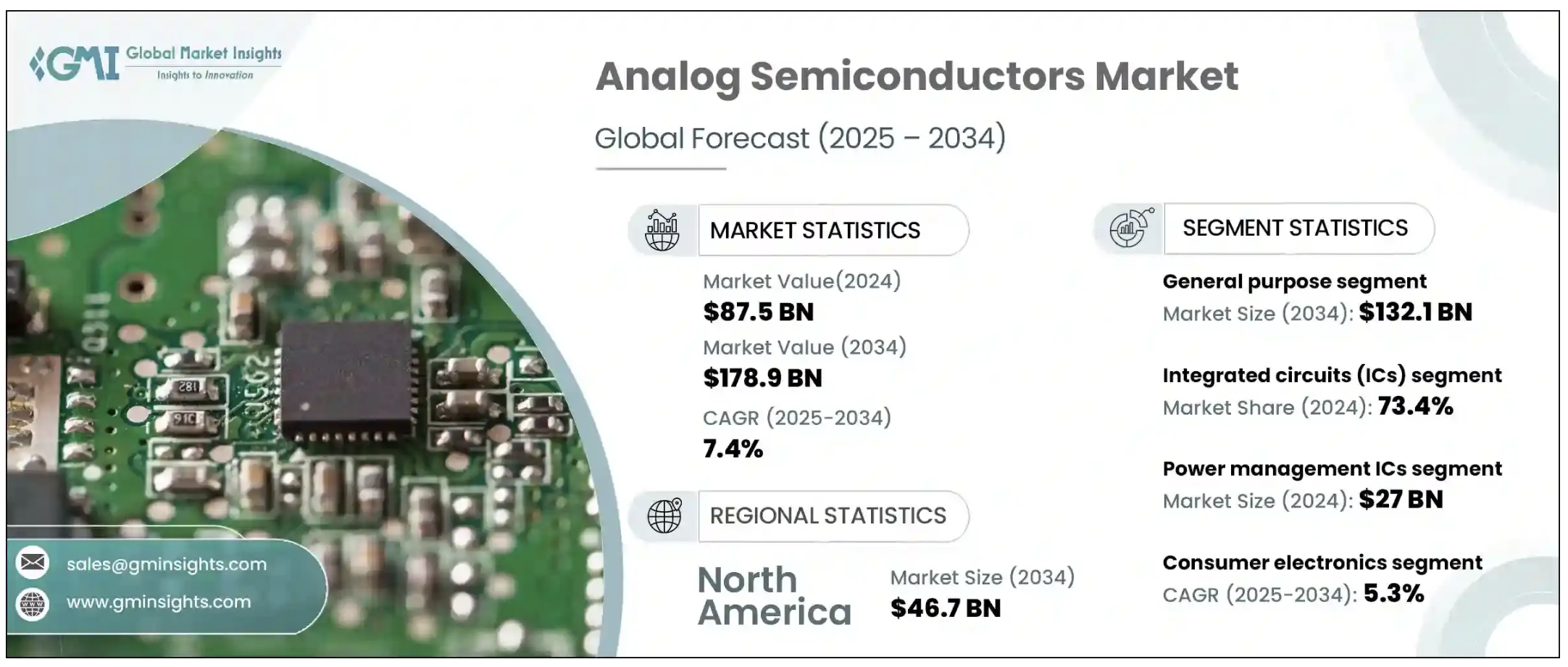 The analog semiconductor market is projected to grow at 7.4% over the next 10 years.