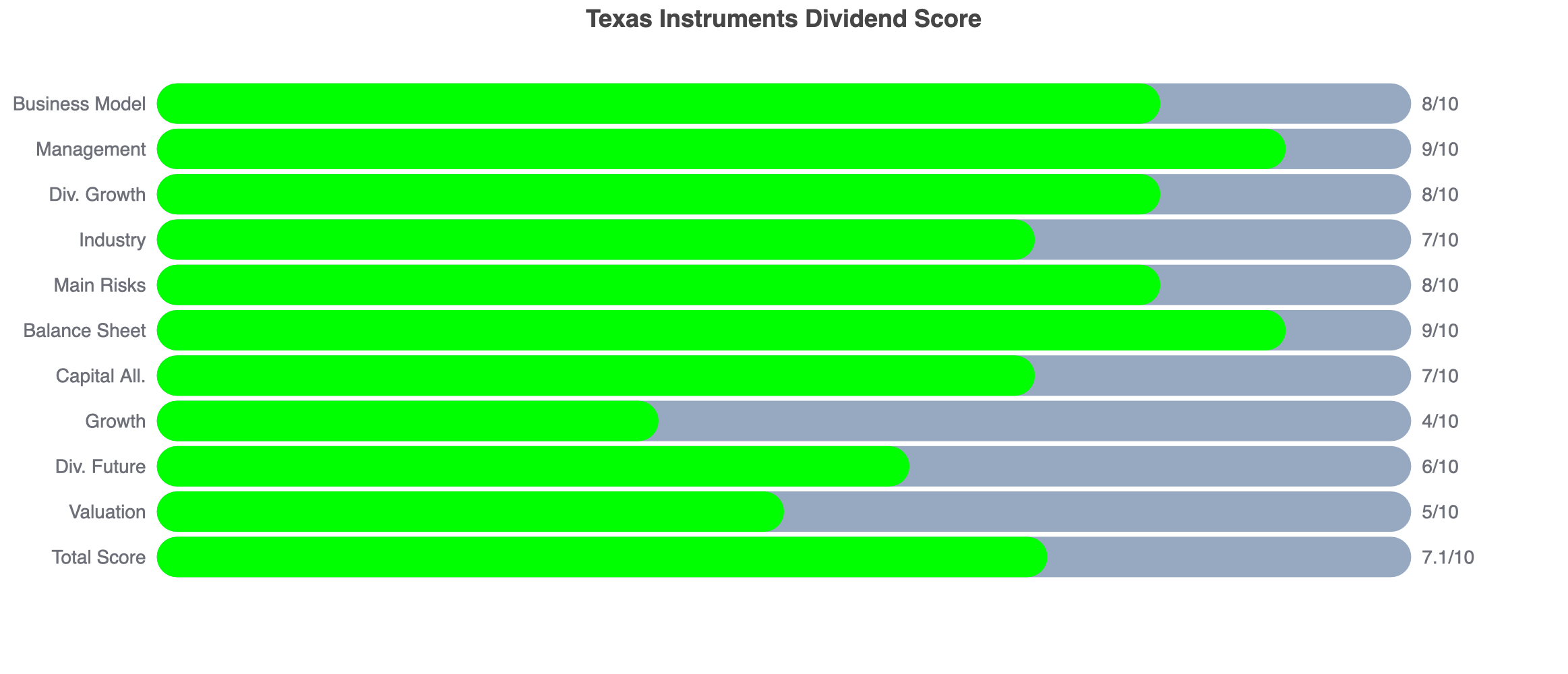 Texas Instruments receives a Dividend Score of 7.1/10.