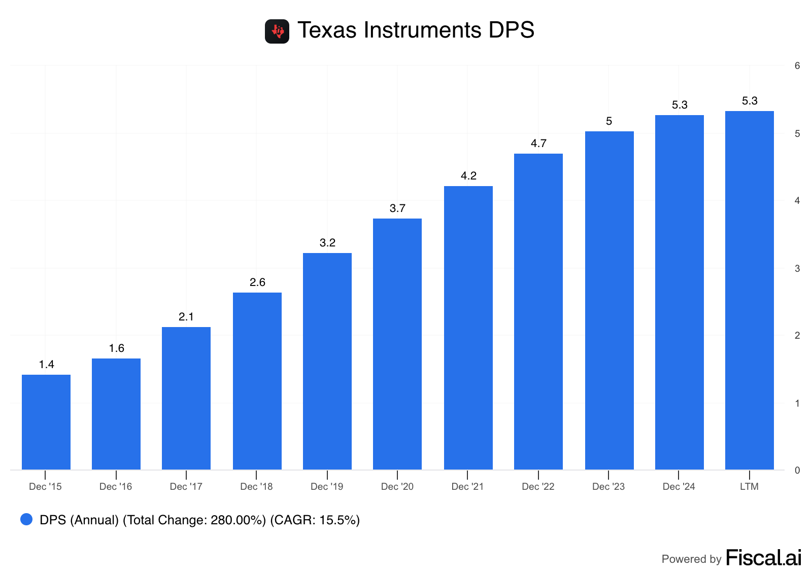 And Texas Instruments hasn’t historically bought shares back quick enough to get us there: