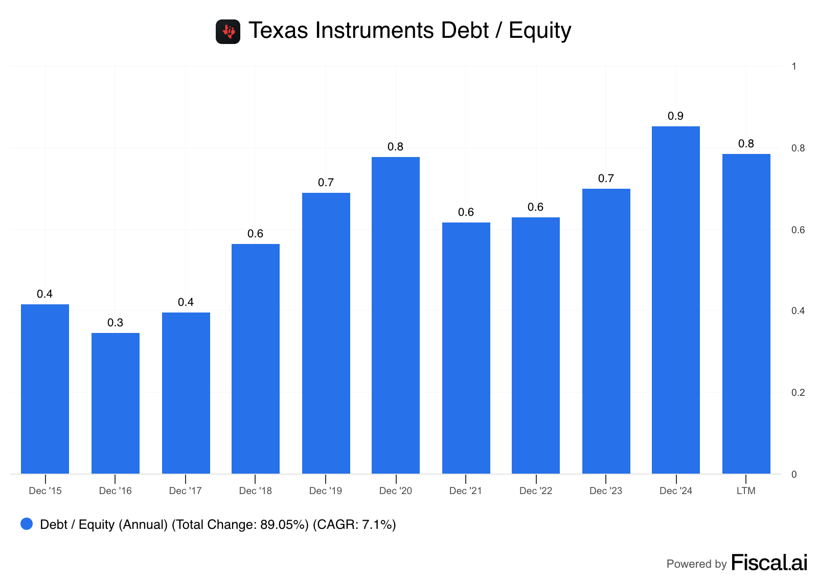 Conclusion: These numbers are VERY healthy. Texas Instruments has an excellent balance sheet.
