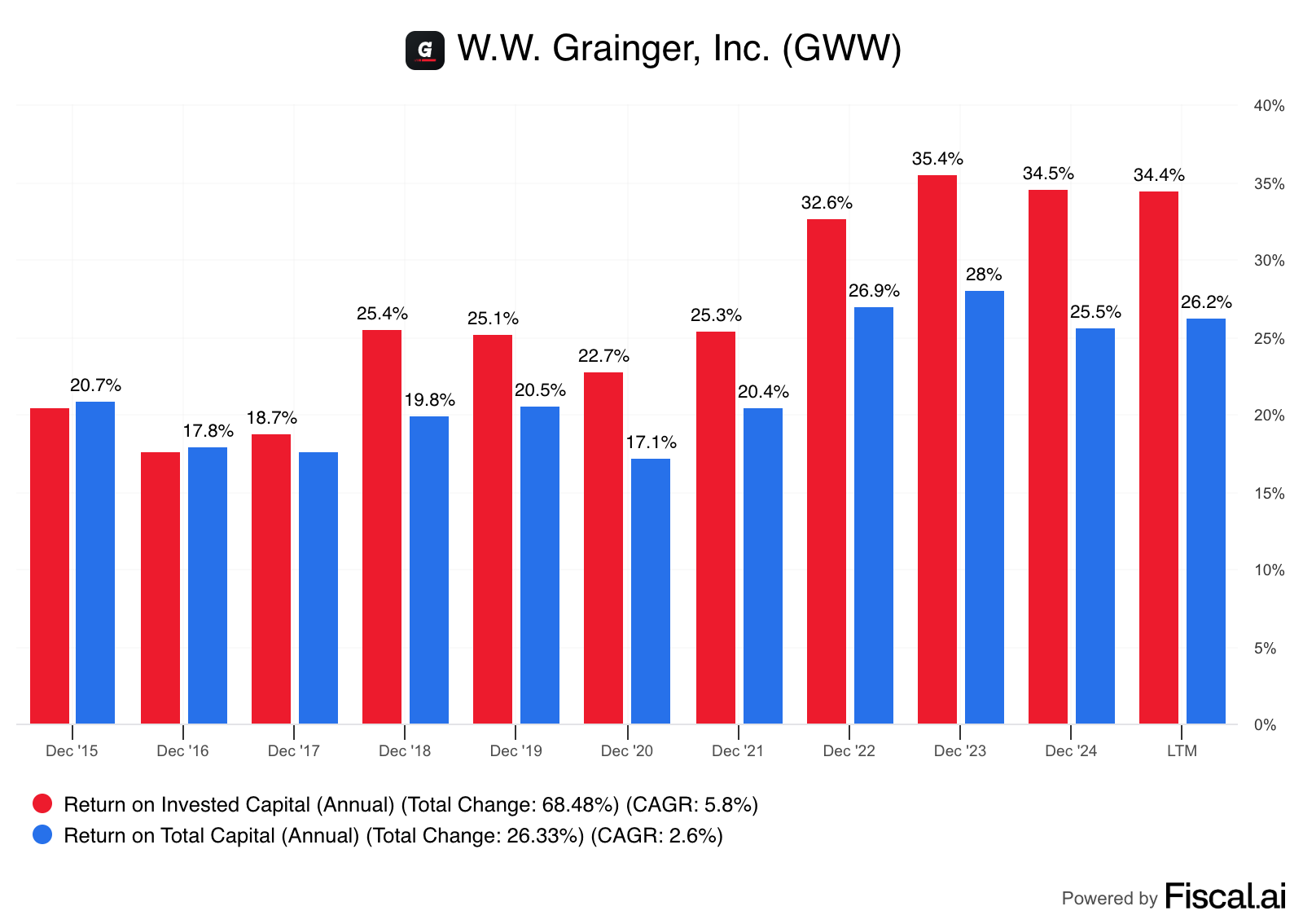 Yes. Grainger consistently earns very high returns on both Invested Capital and Total Capital: