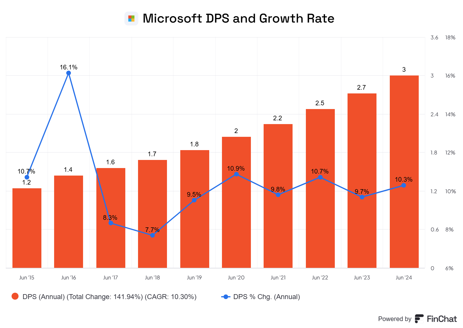 Microsoft has been growing its dividend by about 10% a year. Last year, they paid almost $22 billion in dividends!