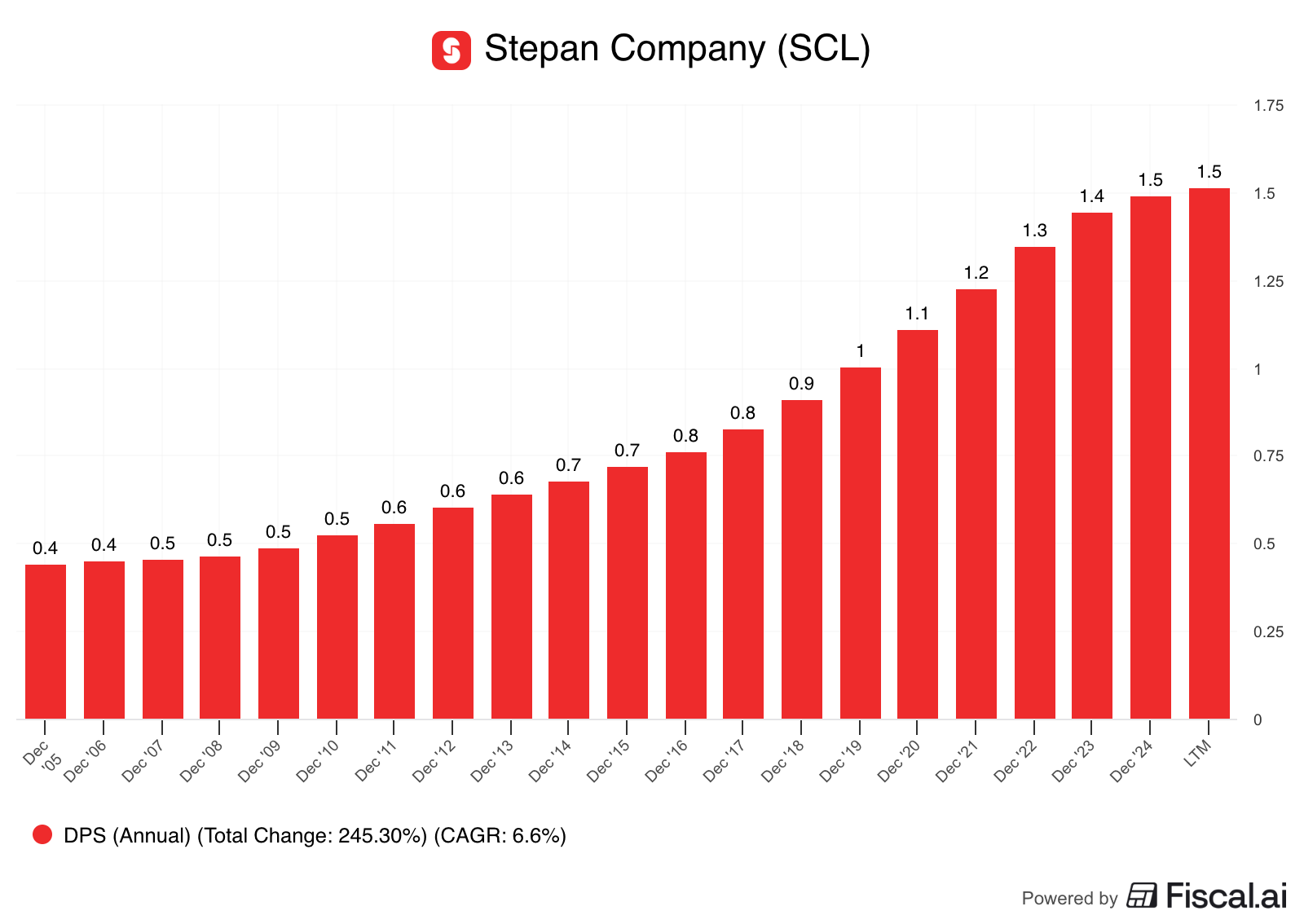 Stepan Company (SCL) makes specialty chemicals used in detergents, cleaners, personal care products, and many industrial goods.