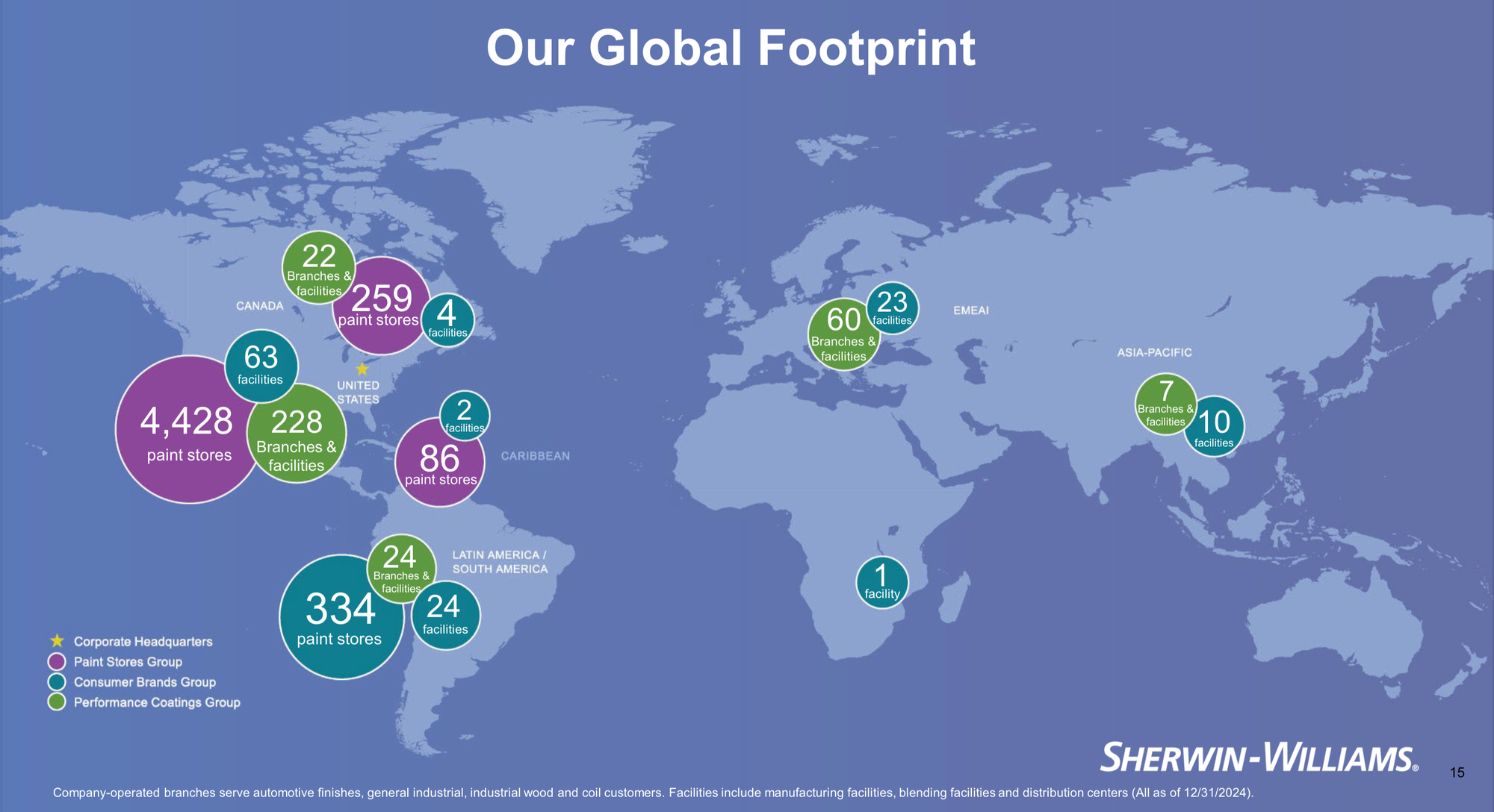 Sherwin-Williams (SHW) makes and sells paints, coatings, and related products. Their stores supply homeowners, contractors, and industrial customers.