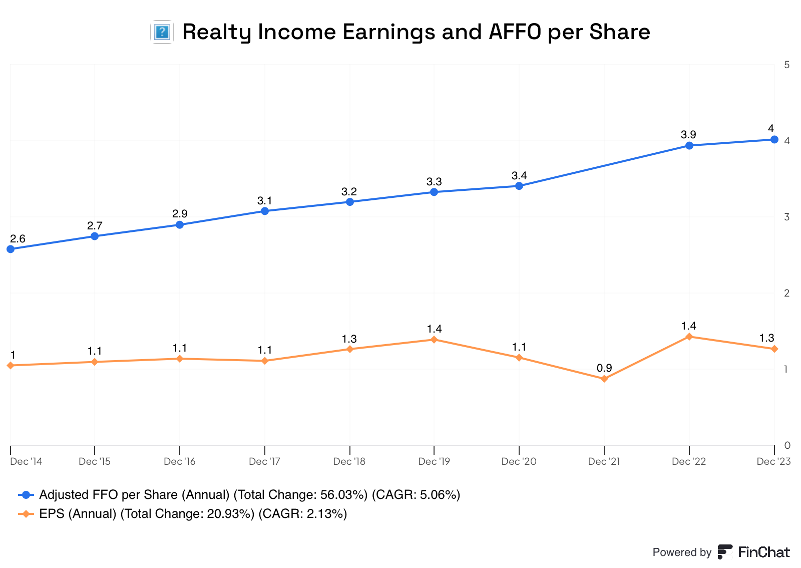 Here’s the difference in Realty Income’s EPS and AFFO per share.