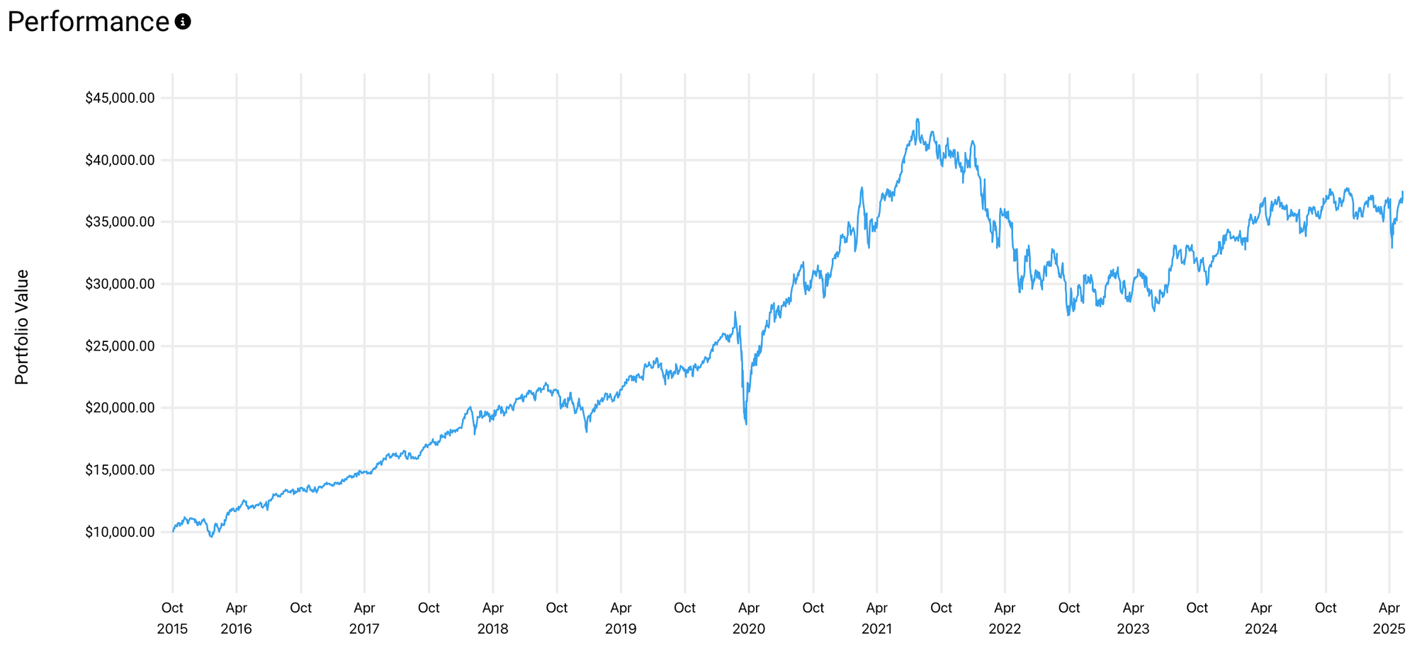 And the share prices? They grew at a 14% CAGR over the same time period:
